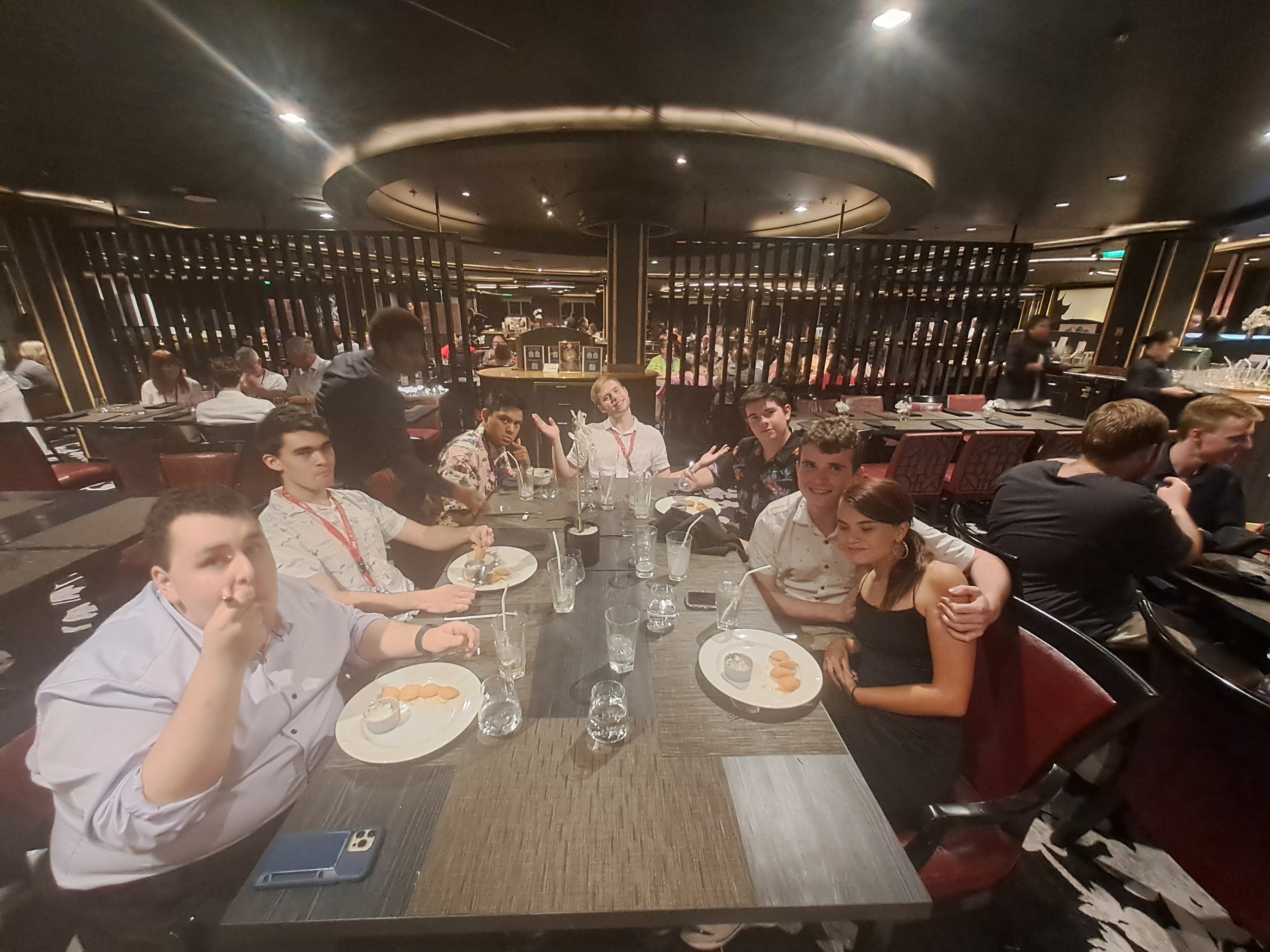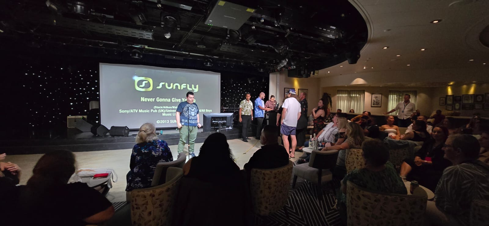 When we're on the cruise, we would do karaoke, go swimming, go to the gym, trivia, dining together, etc. Cruises are an amazing experience for anyone who wishes to explore or go out.